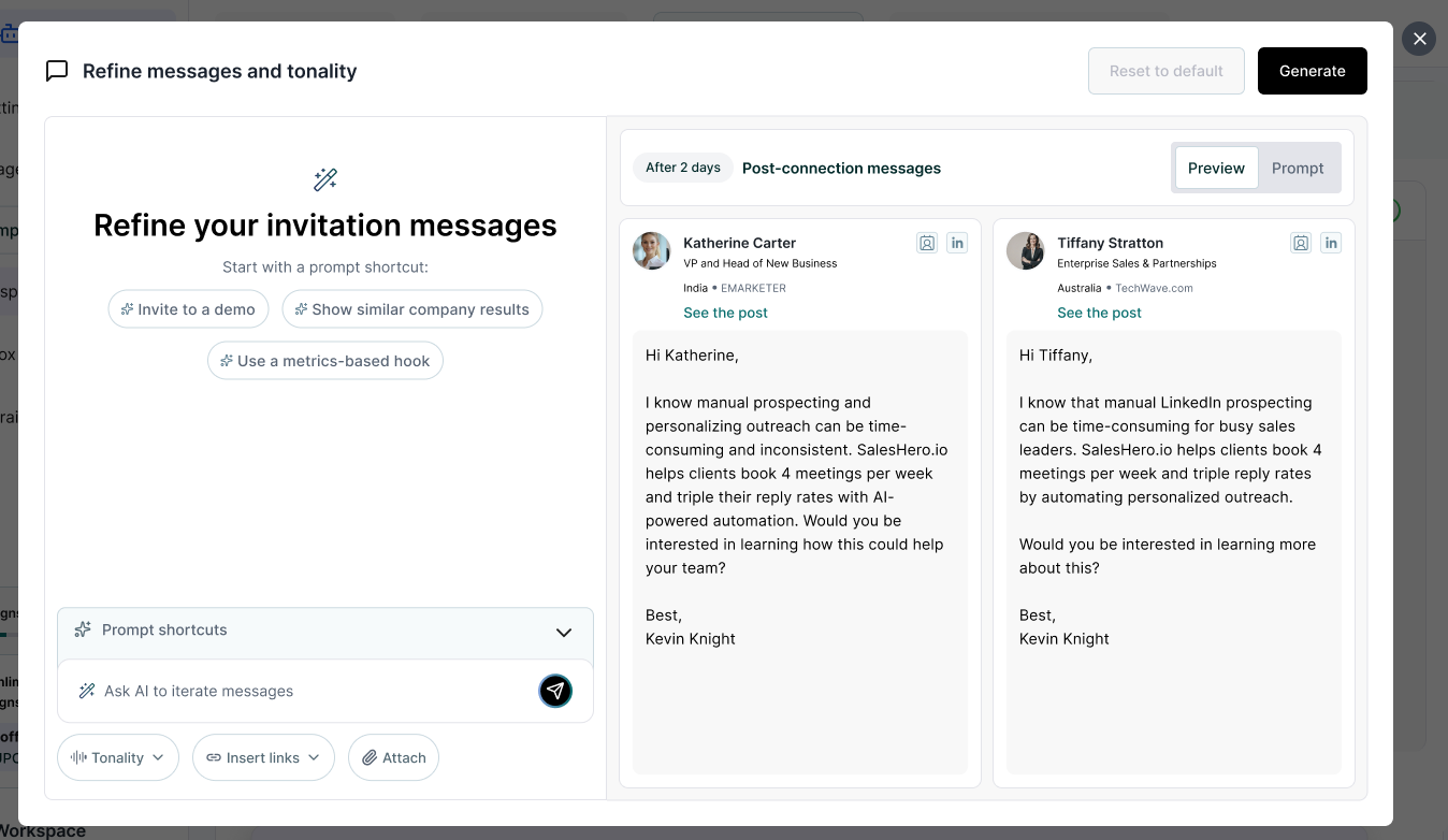 SalesHero. Automated AI-generated outreach messages(0-1)